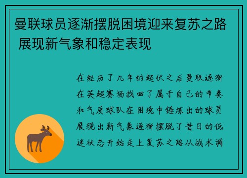 在经历了几年的起伏之后,曼联逐渐在英超赛场找回了属于自己的节奏和气质。球队在困境中锤炼出的球员展现出新气象,逐渐摆脱了昔日的低迷状态,开始走上复苏之路。从战术调整到球员表现的提升,曼联正在迈向稳定的表现,球队逐渐显现出强大的韧性和斗志。本篇文章将从四个方面详细阐述曼联球员如何摆脱困境,走上复苏之路,并逐步展现出新的气象和稳定的表现。这四个方面分别为:1) 战术的调整与适应,2) 球员个体状态的恢复,3) 团队协作与凝聚力的提升,4) 青训系统的挖掘与培养。通过这四个方面的分析,我们可以看到曼联如何在挑战中崛起,朝着更加稳健的未来前行。